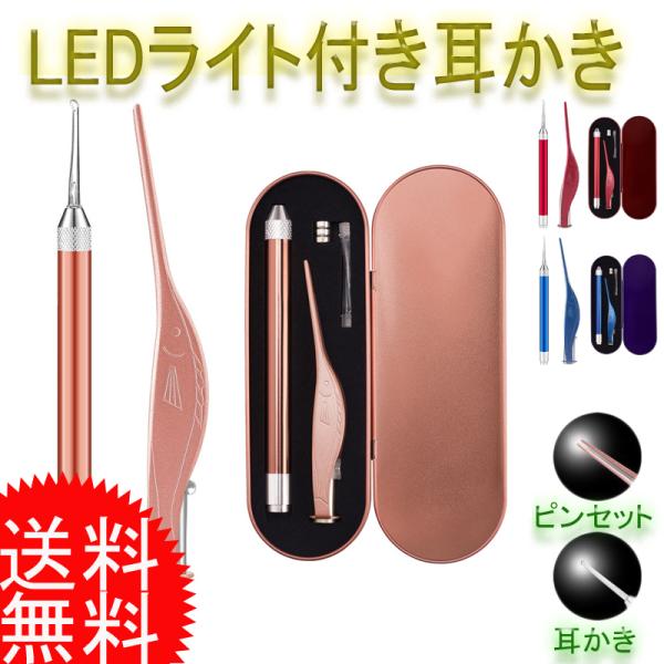 Ledライト付きで見やすく便利 Ledライト付き耳かきセット 送料無料 お買い物マラソン対象商品 Led付 耳かき ピンセット 収納ケース付き ライト付き アイディア商品 耳掃除 送料無料 Allys Com Pk